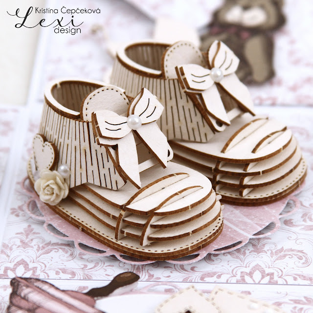 One of my favourite colours is pink so you may know that Shabby Winter is my favourite collection (but not only) for its colours. I have created a few projects with this collection but I never used it for baby project. And actually it's great for baby girl projects!